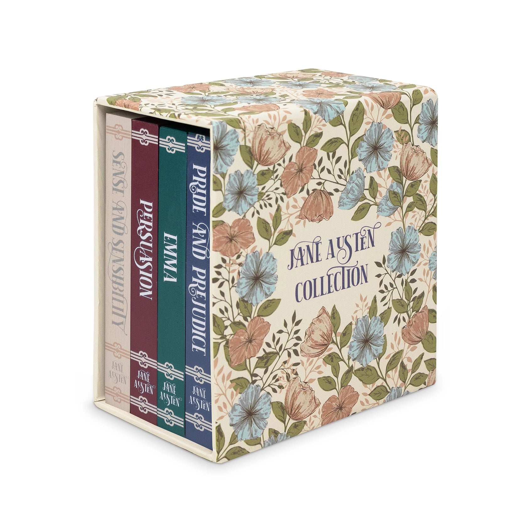 - Four coasters shaped like classic Austen titles—Pride and Prejudice, Sense and Sensibility, Emma, and Persuasion